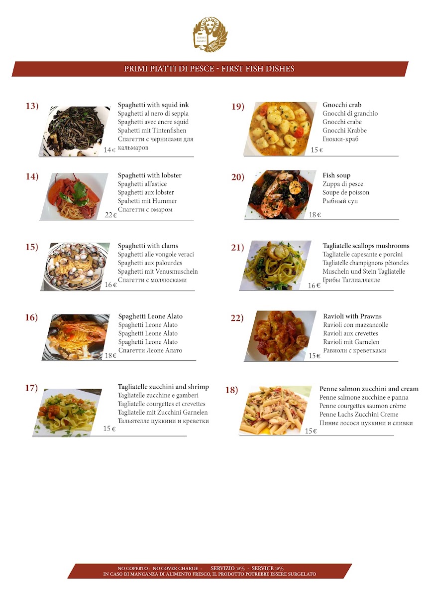 Pizza aficionados will revel in the classic Marinara (€5.50) and gourmet selections like Diavola (€8.00). With delicious food, a warm ambiance, and prompt service, Osteria Leone Alato promises an authentic Venetian dining experience that delights the senses.